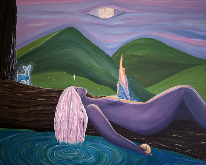 girl’s girl paradise series is about womanhood in all its complexity, lived within a patriarchal world that still seeks to control our bodies and silence our voices. Being a woman is a different experience for everyone, as feminism and its intersectionality. With this series, I celebrate women through my own vision of what makes it fun, elevating, magical, challenging, frustrating, bonding, and empowering. It’s an ode to the witches who fought for our rights, a kiss to feminist mythology, a nod to our spirituality and a dance with our inner fire & intuition.