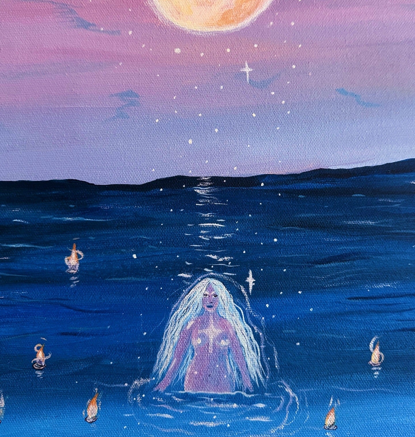 La Sirena is immersed in her full moon ritual. Blending the powers of fire & water, she radiates from her untamed essence. Lucid & magnetic, she embodies passion & persuasion 🌊🕯️🔮🌬️